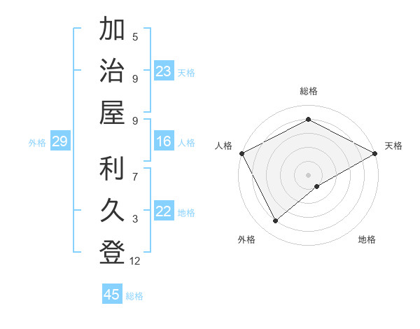 加治屋 利久登さんを姓名の画数から五運を鑑定