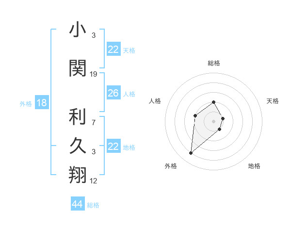 小関 利久翔さんを姓名の画数から五運を鑑定
