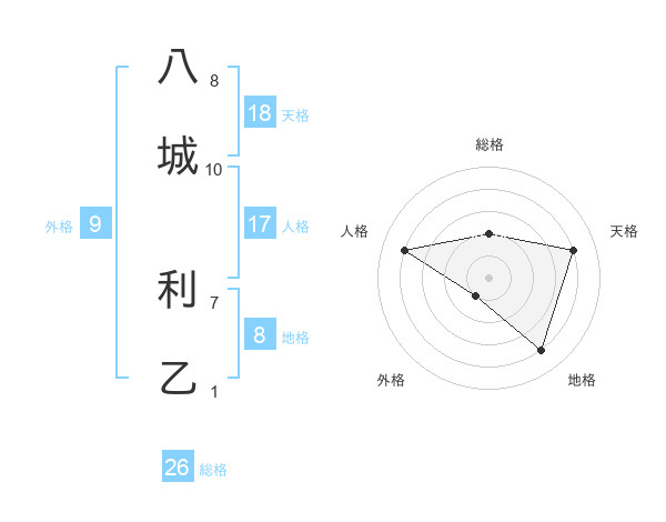 八城 利乙さんの総格は26画の2点!