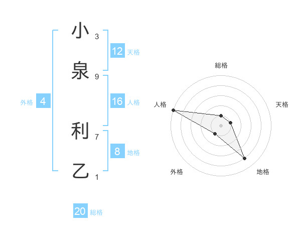 小泉 利乙さんの総格は20画の1点!