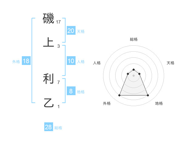磯上 利乙さんを姓名の画数から五運を鑑定