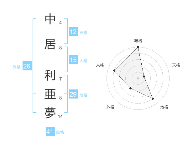 中居 利亜夢さんを姓名の画数から五運を鑑定
