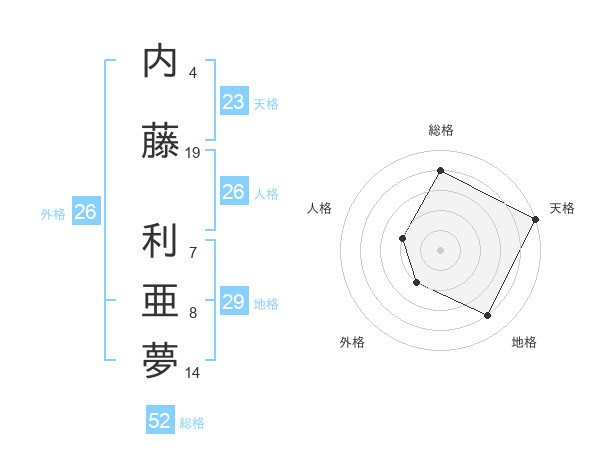 内藤 利亜夢さんの総格は52画の4点!