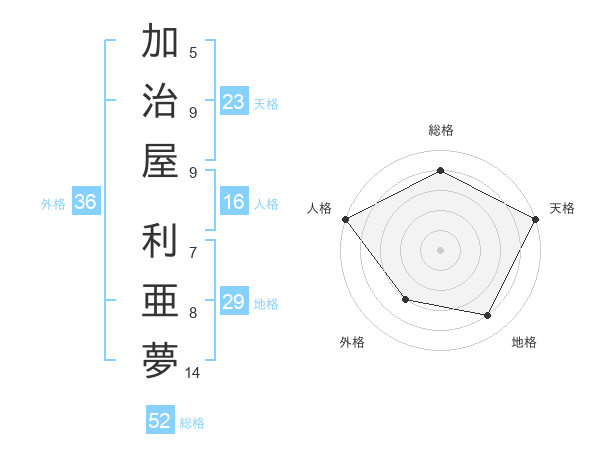 加治屋 利亜夢さんを姓名の画数から五運を鑑定