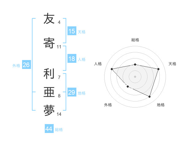 友寄 利亜夢さんの天格は15画の4点!