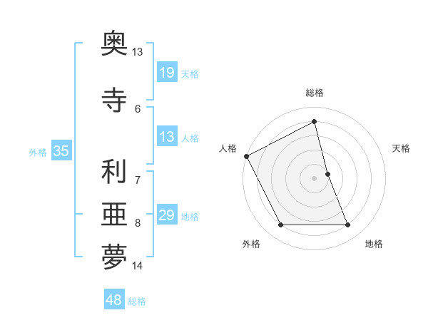 奥寺 利亜夢さんを姓名の画数から五運を鑑定