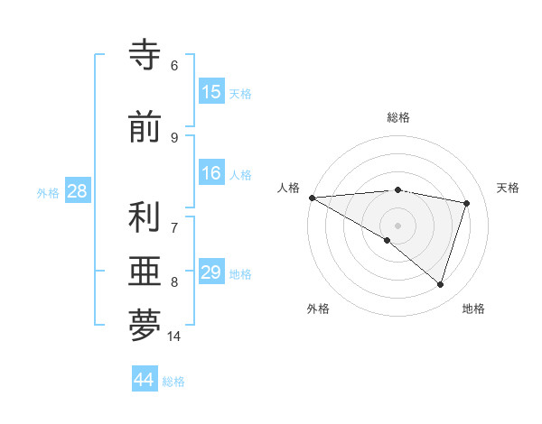 寺前 利亜夢さんを姓名の画数から五運を鑑定