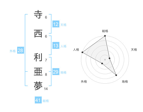 寺西 利亜夢さんを姓名の画数から五運を鑑定