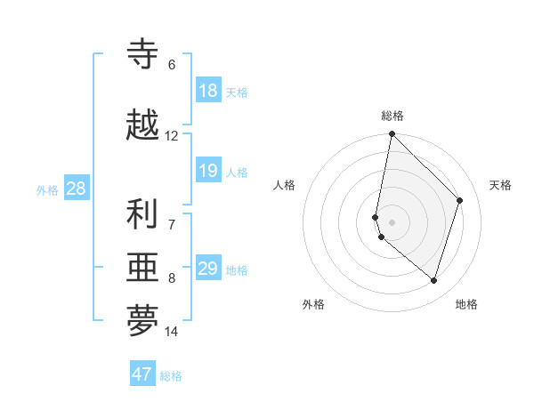 寺越 利亜夢さんを姓名の画数から五運を鑑定