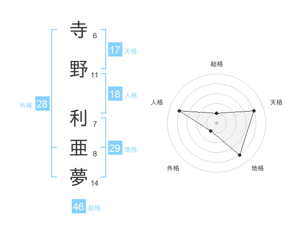 寺野 利亜夢さんを姓名の画数から五運を鑑定