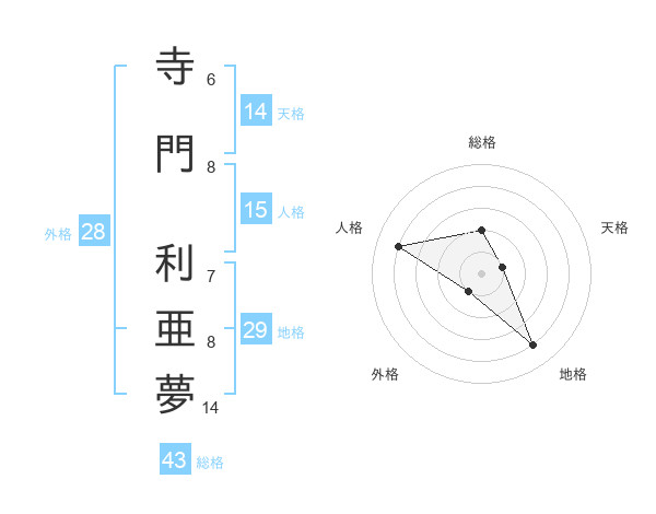 寺門 利亜夢さんを姓名の画数から五運を鑑定