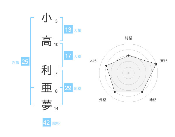 小高 利亜夢さんを姓名の画数から五運を鑑定