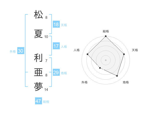 松夏 利亜夢さんの総格は47画の5点!
