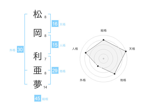 松岡 利亜夢さんの天格は16画の5点!