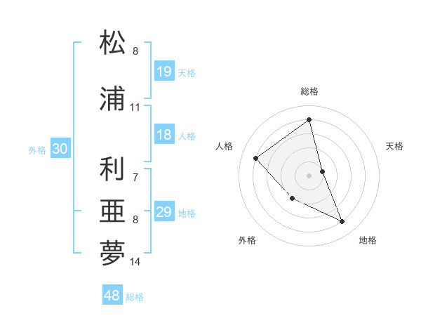 松浦 利亜夢さんを姓名の画数から五運を鑑定
