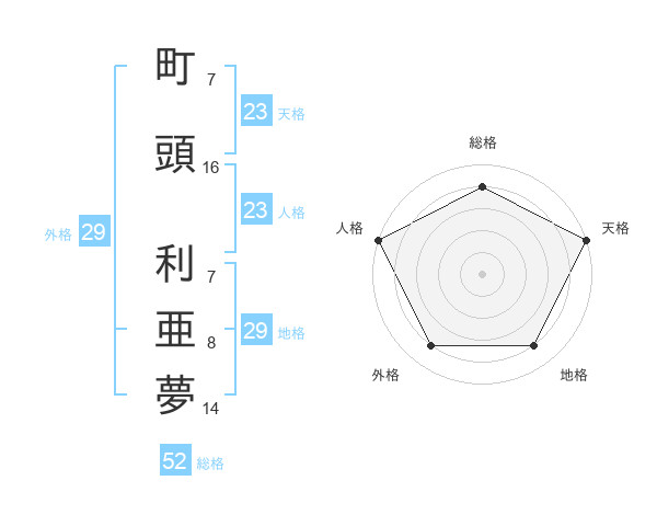 町頭 利亜夢さんを姓名の画数から五運を鑑定