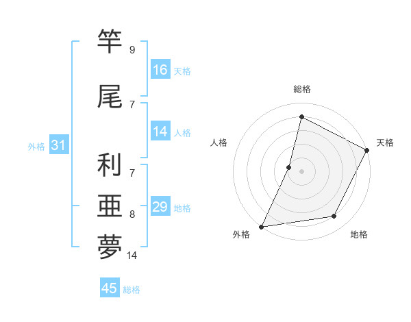 竿尾 利亜夢さんを姓名の画数から五運を鑑定