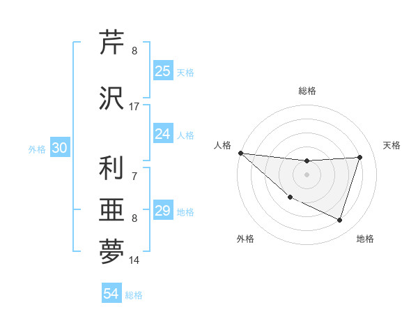 芹沢 利亜夢さんの天格は25画の4点!