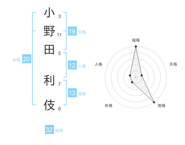 小野田 利伎さんを姓名の画数から五運を鑑定