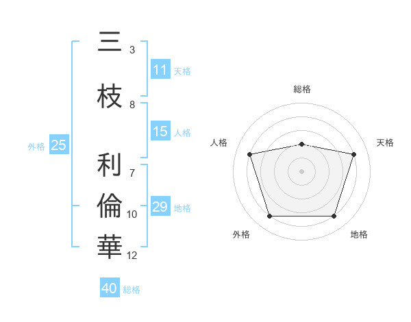 三枝 利倫華さんの天格は11画の4点!