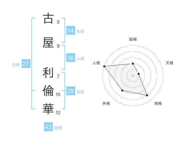古屋 利倫華さんを姓名の画数から五運を鑑定