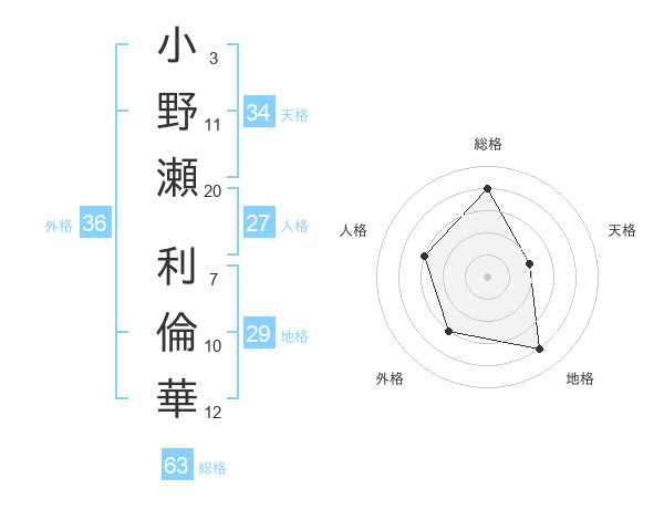 小野瀬 利倫華さんを姓名の画数から五運を鑑定