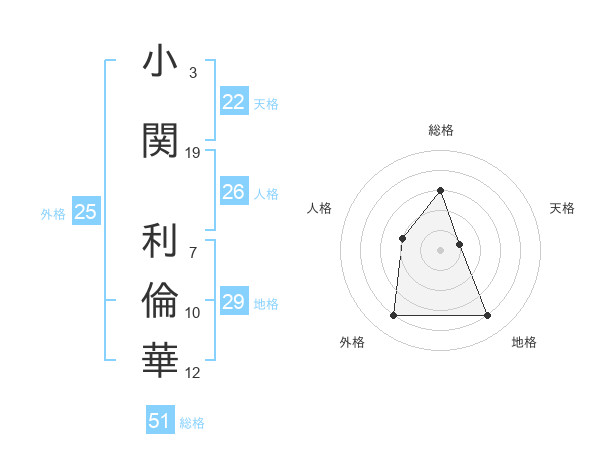 小関 利倫華さんを姓名の画数から五運を鑑定