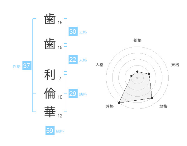 歯歯 利倫華さんの外格は37画の5点!