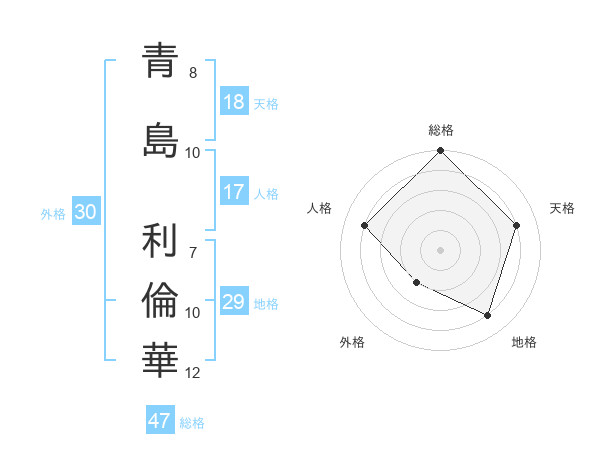 青島 利倫華さんの総格は47画の5点!