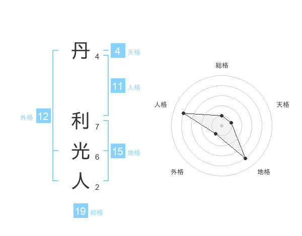 丹 利光人さんの地格は15画の4点!