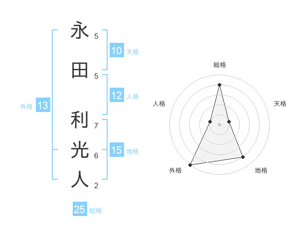 永田 利光人さんの総格は25画の4点!