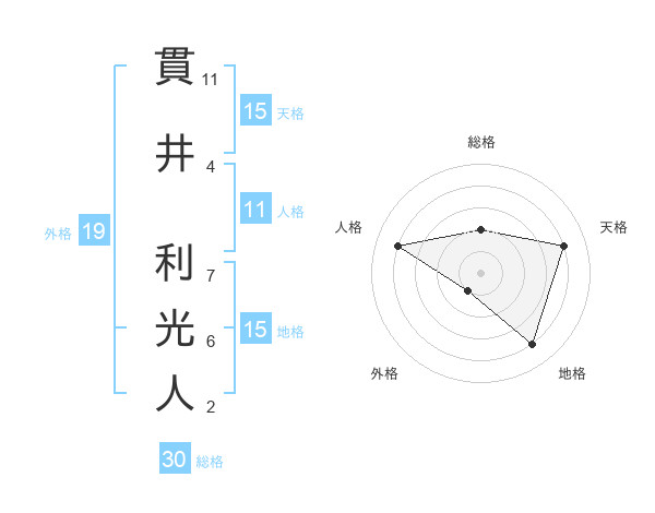 貫井 利光人さんを姓名の画数から五運を鑑定