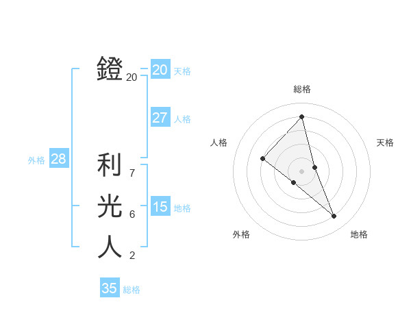鐙 利光人さんを姓名の画数から五運を鑑定