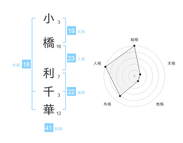 小橋 利千華さんを姓名の画数から五運を鑑定