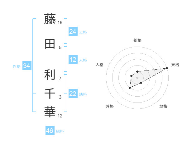 藤田 利千華さんを姓名の画数から五運を鑑定