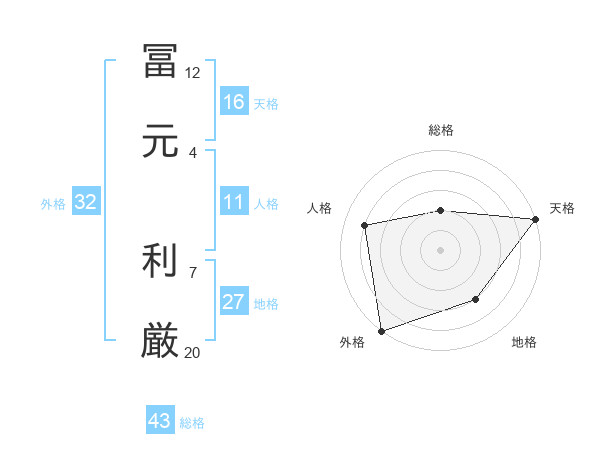冨元 利厳さんを姓名の画数から五運を鑑定