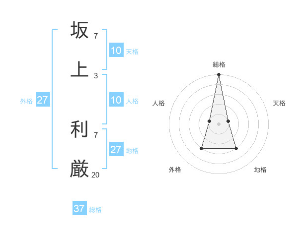 坂上 利厳さんの総格は37画の5点!