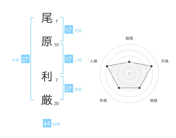 尾原 利厳さんを姓名の画数から五運を鑑定