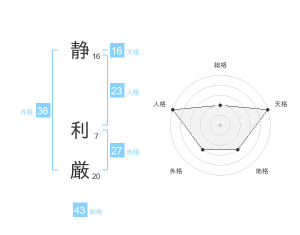 静 利厳さんの天格は16画の5点!