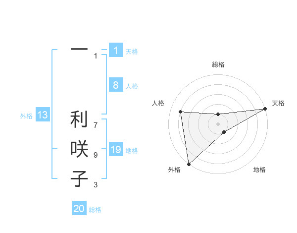 一 利咲子さんの外格は13画の5点!
