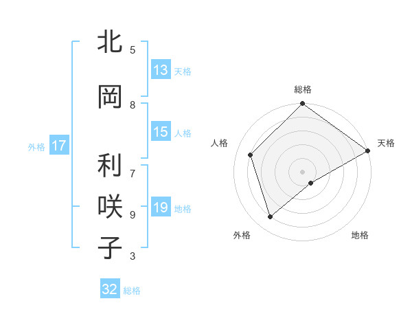 北岡 利咲子さんを姓名の画数から五運を鑑定