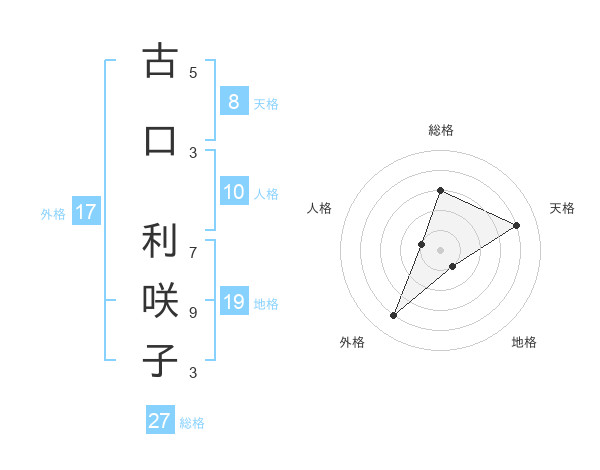 古口 利咲子さんの総格は27画の3点!