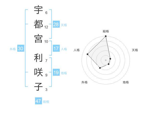宇都宮 利咲子さんを姓名の画数から五運を鑑定