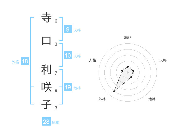 寺口 利咲子さんを姓名の画数から五運を鑑定