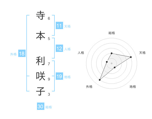 寺本 利咲子さんの天格は11画の4点!