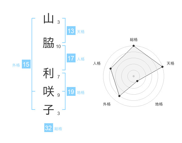 山脇 利咲子さんを姓名の画数から五運を鑑定