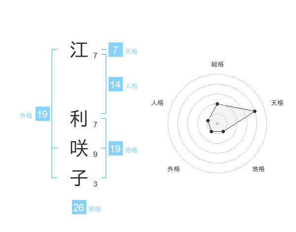 江 利咲子さんの外格は19画の1点!
