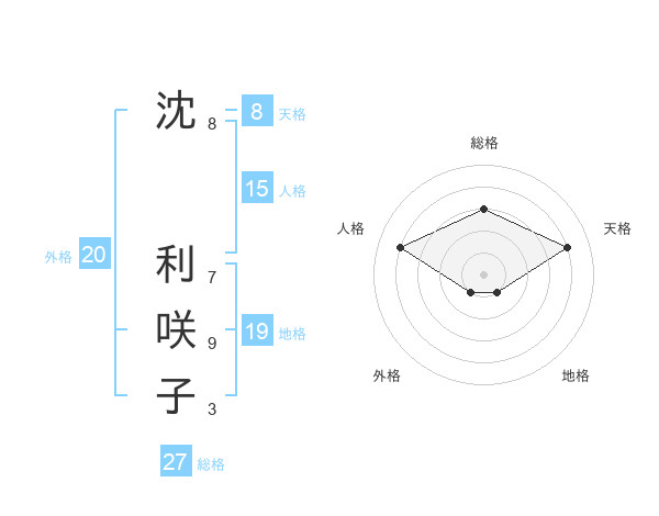 沈 利咲子さんを姓名の画数から五運を鑑定