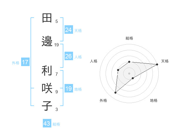 田邊 利咲子さんを姓名の画数から五運を鑑定