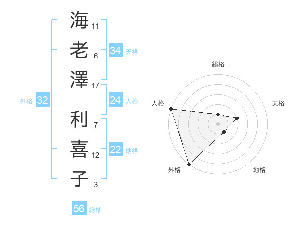 海老澤 利喜子さんを姓名の画数から五運を鑑定